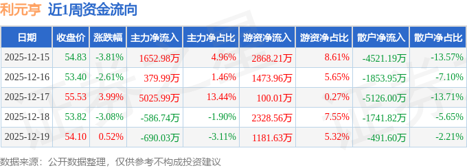 资金流向数据方面,本周利元亨主力资金合计净流入5782.19万元,游资资金合计净流入7952.37万元,散户资金合计净流出1.37亿元。本周资金流向一览见下表: